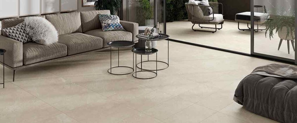 自然石の風合いで、さらりとした表面と防滑性能をあわせもつ人「インドア アウト」シリーズ。空間をすっきりまとめながら、素材感で魅せる大判ストーンタイルです。 イン…