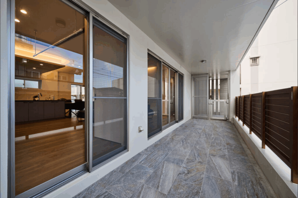 上質な石英岩調タイルで仕上げるワンランク上のベランダ空間