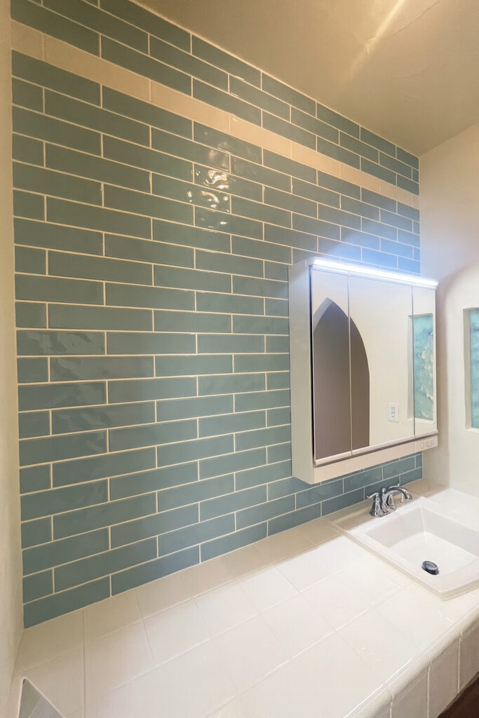 さわやかで清潔感のあるブルータイルの洗面室 洗面室・脱衣室 アクアレラ クリックで拡大表示 使用タイル アクアレラ アクア 規格:75×300×8価格:¥11,000/㎡ おすすめの施工事例 ブルーのミックス柄タイルが爽やかな浴室 シンプルなニューヨークスタイルトイレ 木目の玄関ドアに馴染む自然なのタイル ぬくもりと上品さを兼ね備えた、テラコッタ調タイルの玄関まわり ダークブラウンのフローリングとモルタル調のタイル ビンテージ風タイルがアクセントの洗面室