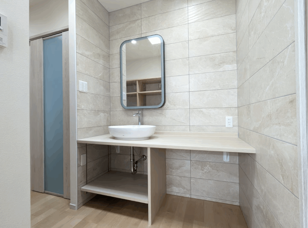 落ち着きと清潔感を兼ね備えた、天然石調タイルの洗面スペース 洗面室・脱衣室 テンポ クリックで拡大表示 使用タイル テンポ コットン 規格:200×600×9価格:¥8,600/㎡ テンポ カーブ コットン 規格:200×600×9価格:¥9,800/㎡ (¥1,176/枚) おすすめの施工事例 木目とタイルのあたたかいカフェ風キッチン リアルな天然石調のタイルの玄関ポーチ グレーのシンプル石目調のデッキ ストライプ柄が引き立つベージュのシャワールーム 落ち着いた質感が魅力。セメント調タイルのモダンな玄関空間 和モダンに映える石英岩調タイル。品のある温かみを感じる玄関まわりに